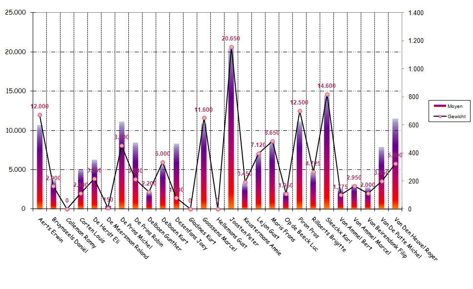 | 19 | Op de Beeck Luc | 3,0 | 3,0 | 1,0 | 1,0 | 1,0 | 1,0 | 1,0 | 1,0 | 1,0 | 1,0 | 1,0 | 15,0 | |||||||||