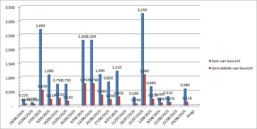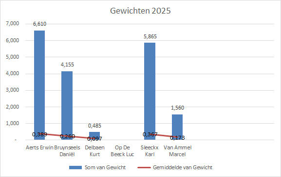 Door op de naam van de visser te klikken zie je zijn/haar seizoensresultaten.(na 10 wedstrijden)
